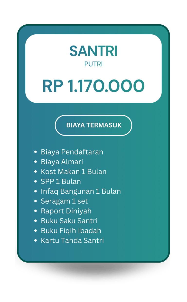 Calon santri minimal umur 6 tahun atau kelas 1 SD/MI